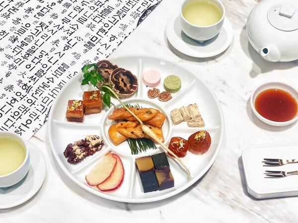통창 밖 황궁우를 배경으로 동양의 색을 담아낸 다양한 디저트를 맛볼 수 있다. 호두 곶감말이와 대표적인 한식 디저트로 쫄깃한 식감의 궁중 디저트 주악을 비롯해 청매실과 팥·녹차 양갱, 검은콩 설탕 조림 등 이색 비주얼의 디저트가 준비된다.