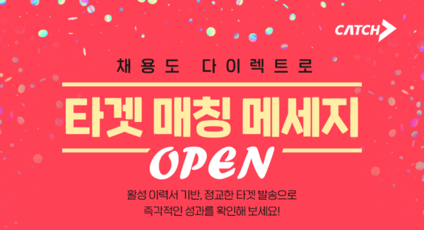 ‘타겟 매칭 메세지’는 캐치가 보유한 67만 건의 활성 이력서 데이터를 기반으로, 조건에 맞는 인재에게 채용공고 메시지를 자동으로 발송해 주는 서비스다.