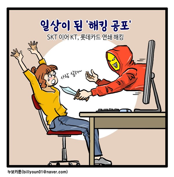 관련기사 민주당 황정아 의원 “KT 소액결제 피해, 서초·동작·일산까지 확산” 조좌진 롯데카드 대표 “진심으로 죄송…고객 전원에 10개월 할부 서비스 무료 제공” KT 소액결제 사건 용의자 체포…중국 국적 40대 남성 롯데카드 ‘해킹 사고’ 피해자 수백만명 가능성 제기 "해킹 아니라더니" KT 이용자 '공포' 현실화…피해액 1억원 넘어 경기도에서 서울로…점차 번지는 KT발 해킹 의혹 [만평] 이랬다저랬다 관세 협상 [만평] 자동 면직 [만평] 언감생심 [만평] 매매절벽 [만평] 성난 민심 [만평] 핵추진잠수함