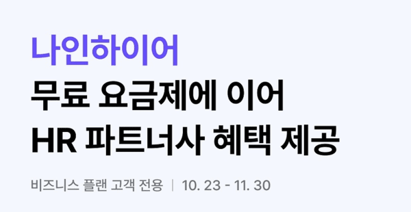 채용 스타터 패키지 이벤트는 나인하이어 무료 비즈니스 플랜 고객이라면 누구나 참여 가능하다. 오는 11월 30일까지 공식 홈페이지를 통해 신청하면 된다.